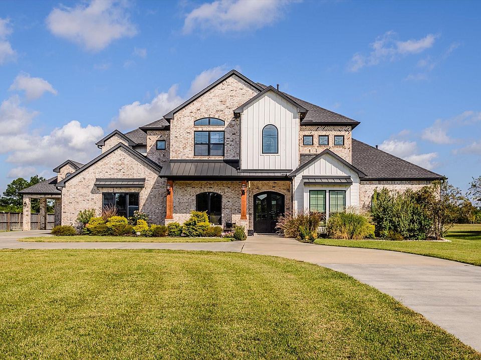 Incredible opportunity to own a beautiful home on acreage in the desirable Deer Park area with quick access to downtown Houston. This stunning property offers an ideal layout for entertaining with an open-concept kitchen featuring beautiful cabinetry, quartzite countertops, wood beams, and a large island overlooking the living area. The living room includes coffered ceilings and gas fireplace, creating a warm and inviting atmosphere. The home’s elegant design features a curved staircase, wainscoting, and engineered hardwood floors throughout. The large primary suite offers a gas fireplace and a luxurious ensuite bath with marble floors and a spacious walk-in shower. The formal dining room is currently being used as a game room, offering flexibility to fit your needs. Enjoy the backyard oasis complete with a pool, hot tub, covered patio with outdoor fireplace, and a full outdoor kitchen — all wired for sound, perfect for gatherings or relaxing evenings. Just in time for the holidays!