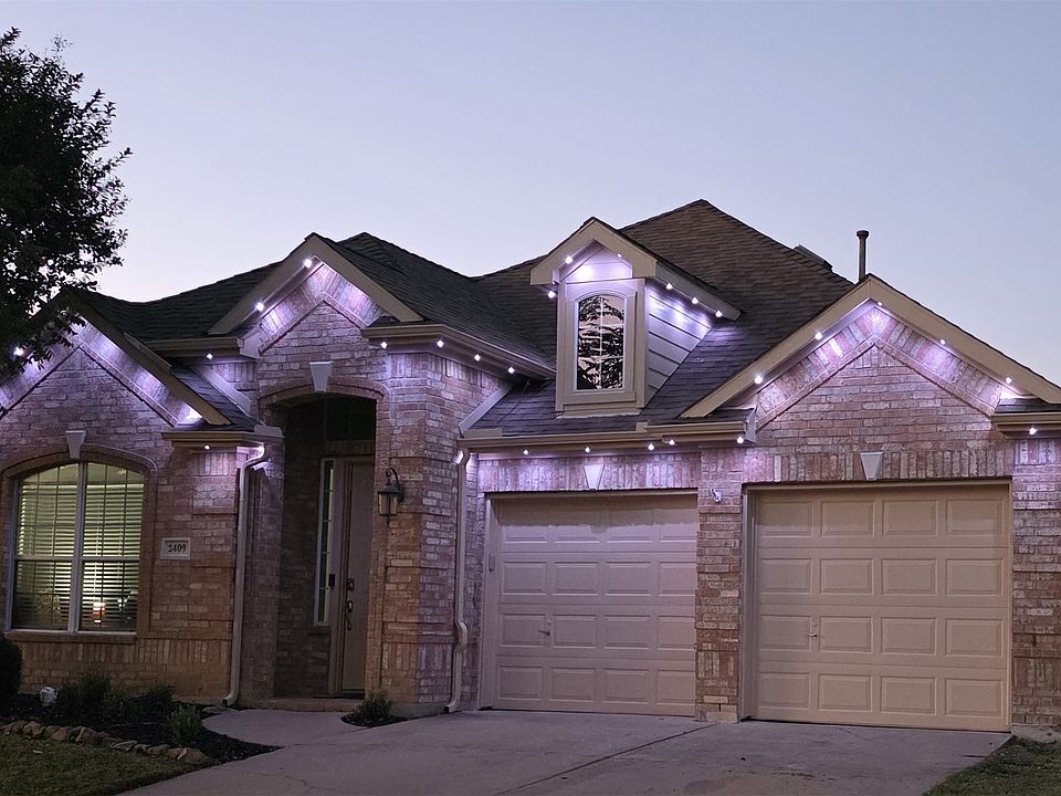 Welcome home for the holidays! Lights included! Recently installed color changing LED Jellyfish lights discreetly hidden under the eaves! Smartphone app controls seasonal colors, patterns for holiday, sports events, patriotic & accent lighting. Select from a wide range of pre-programmed themes with customizable variations to suit your tastes! Adjustable intensity & timer via smartphone app! Inviting 1 story open floorplan has large center living & split bedrooms for maximum privacy! Exceptionally maintained home is evident with recently painted interior & exterior repainted just last week! Recent updates include stone tile fireplace with raised seamless Lueders stone limestone hearth, new updated back door with protected enclosed blinds in glass, durable beautiful wood look tile throughout including in all the bedrooms & study! Center kitchen with beautiful tall 42 inch cabinets is a Chef's delight with stainless gas range & 2nd prep sink! Primary ensuite has large corner tub, oversize shower with seat, well designed 7x12 long closet! Triple box seat windows in primary overlook huge backyard & 60 ft private brick wall maintained & recently replaced by the HOA! Exceptional Frisco schools, all nearby! Convenient location at Eldorado Parkway & 423 for great access away from construction. Close to great shopping: HEB, Central Market, Wild Fork, Lowe's, Walmart, it's all nearby!