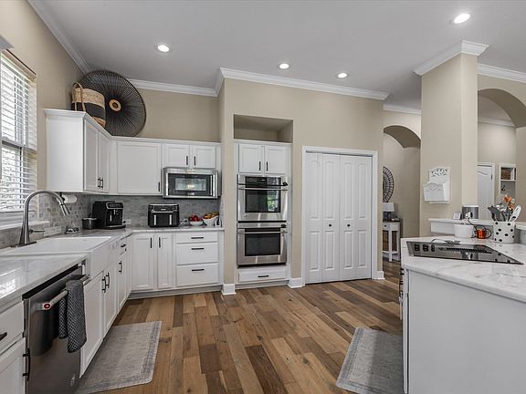 Open House Sunday 2-4pm. Stunning golf course home overlooking the 5th green of Southwood! This 4-bed + office, 3-bath home blends luxury, comfort & convenience. Designed to live like a 1-story, the layout features a spacious owners suite, 2 guest rooms & an office downstairs, plus a large upstairs bonus room w/ full bath & walk-in closet — perfect as a 4th bed or 2nd master. Enjoy a bright, open floorplan w/ French oak engineered hardwoods, wood-burning fireplace, & a chef’s kitchen featuring quartzite counters, farmhouse sink, G.E. Monogram double wall ovens & KitchenAid Silent dishwasher. The owner's suite includes a spa-style bath w/ tile shower, soaking tub & custom closet by Closets by Design. Outdoor living shines w/ a new 10x50 deck (2024 by Ross Construction) overlooking a lush backyard & scenic golf course views. Updates include new roof (2023, lifetime warranty), Deese Elite Concrete coated garage floor (2025), Husky storage cabinets & full reno in 2020 w/ new flooring, paint & fixtures.
