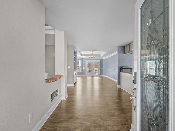 The bonus room features memory foam carpet flooring. The home includes a 2-car garage with a single door (Perfect space for Home Gym) and a circle driveway that accommodates up to 8 vehicles. While tucked away in the community, it is still just 2 roads to the 501 highway. A community pool is located just 500 ft from the house (3 houses down). The property also includes a storage shed for extra space, Full Perimeter Floodlights, and Banana Trees and apple trees in the back yard.