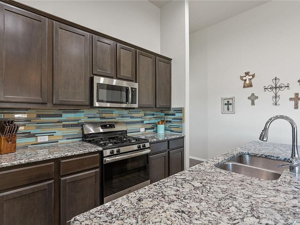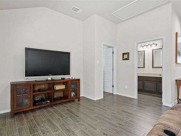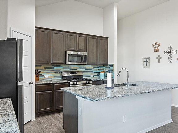 Come lease this beautifully maintained 2018-constructed Brohn home nestled on a large 0.18 acre cul de sac lot with high ceilings throughout, upgraded wood-look tile floors, an open concept kitchen, spacious primary suite, and dual vanities in both bathrooms. In addition to its three dedicated bedrooms, this home lives like a four-bedroom, offering a large office that owners have been using as an additional bedroom AND a bonus flex room! The home feeds into the highly desired Leander school district, with both Glenn High School and Danielson Middle School within walking distance. Enjoy relaxing on your covered back patio with extra space between you and your back neighbors and take advantage of Deerbrooke's plentiful amenities including infinity edge pool, state of the art gym, covered picnic area, playground, private dog park, and beautiful walking trails.