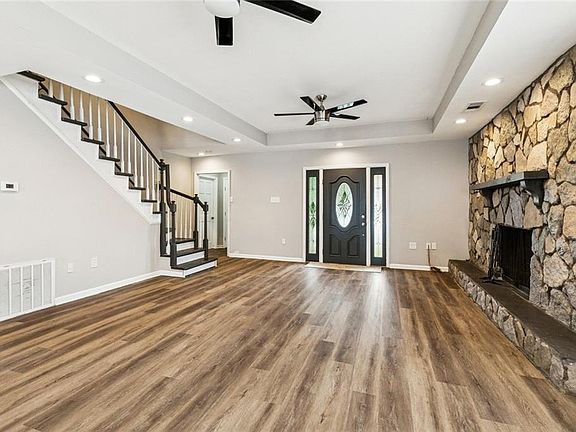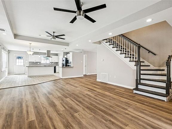Open floorplanPrimary suiteCustom cabinetsStainless farm-style sinkGranite countersVented range hoodFenced yard space