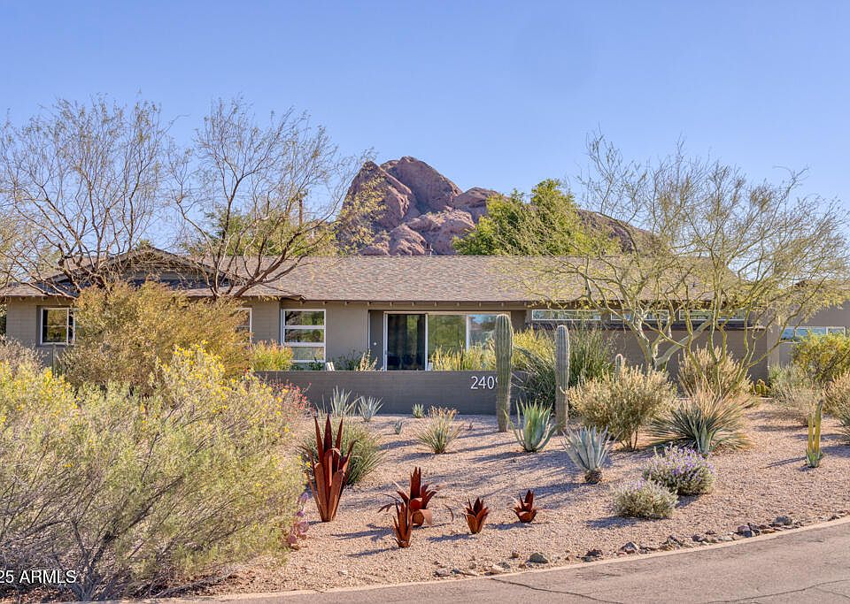 Welcome to your mid-century modern masterpiece! Nestled in the tucked away community of Sherwood Heights, this home is the epitome of indoor/outdoor living. Upon entering, you feel as if you've stepped into a museum. Floor-to-ceiling windows let in an abundance of natural light, highlighting the elegant architecture. Serene views of Camelback and Papago mountains are yours to enjoy. Situated on half an acre lot, this home is conveniently located near Sky Harbor airport, Old Town Scottsdale, and Downtown Phoenix. Sanctuary living in the city, the best of both worlds.