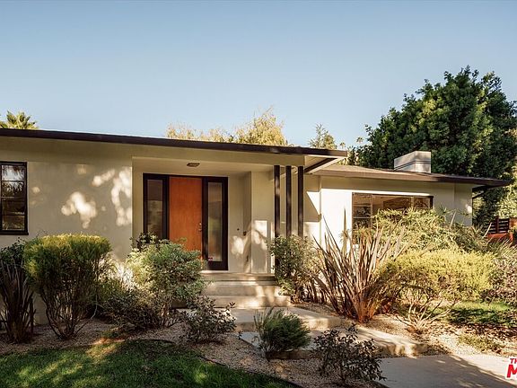 A contemporary and sexy mid-century retreat in Los Feliz on a generous fenced and hedged 10,000sf+ corner lot. Discreetly situated along coveted Vermont Avenue, this property has it all; a 3-bedroom main residence, sparkling pool, detached two-car garage, and a fully permitted guest house! Beyond the hedged and gated entry, an expansive wraparound lawn welcomes you. The low-slung single level mid-century architecture hosts a versatile floor plan, featuring a formal living room with fireplace and original casement windows showcasing the lush front yard. A cozy sitting area, dining space, and open kitchen flow seamlessly to the sun deck and pool ideal for effortless indoor-outdoor living. The spacious primary suite features a walk-in closet, large bathroom with soaking tub and shower, and direct access to a private side deck and yard. Two additional bedrooms, two bathrooms, and a laundry area complete the main home. Surrounded by mature hedges for privacy, the outdoor spaces are designed for relaxation and entertaining with a gorgeous pool, lounge areas, and grassy yard. The newly renovated and light-filled guest house, with its own private entrance and large deck, features kitchen, bathroom, and sleeping area. This separate space is perfect for a home office or for hosting long term guests. A substantial storage area and detached two-car garage complete this rare offering. North of the Boulevard, and moments from Los Feliz Village and the best of Griffith Park- hiking, golfing, tennis and The Greek Theatre, this home embodies the discreet charm, creative energy, and community spirit make Los Feliz such a special place to call home.