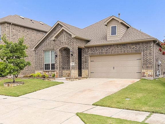 Welcome home to this beautifully maintained stone and brick residence that combines charm, functionality, and comfort. From the moment you arrive, you’ll notice the great curb appeal enhanced by mature landscaping, a welcoming front entry, and sidewalks that make this community perfect for evening strolls or morning jogs. Step inside to find neutral colors throughout, tall ceilings, and rounded corners that give the home a light, open, and inviting feel. The heart of the home is the spacious kitchen, designed with both style and practicality in mind. It features a large island with a sink, breakfast bar seating, stainless steel appliances, and an abundance of counter space for meal prep or entertaining. The bright and open layout allows the kitchen to flow seamlessly into the dining and living areas, making it the ideal setup for gatherings. The primary suite is a true retreat, highlighted by a Texas-sized walk-in closet that offers all the storage you could ever need. The ensuite bathroom provides a relaxing escape after a long day. Secondary bedrooms are well-proportioned, and ceiling fans throughout the home help keep energy costs efficient while providing added comfort. Additional upgrades include ceramic tile flooring throughout, a covered back patio perfect for outdoor living, gutters for peace of mind, and a privacy fence for your own backyard oasis. The 2-car garage adds both convenience and storage space. This home is move-in ready, meticulously cared for, and located in a desirable neighborhood with a community pool to enjoy on those warm Texas days. Don’t miss your opportunity to make this beautiful property your own and start creating memories here—it’s the perfect blend of comfort, style, and location.