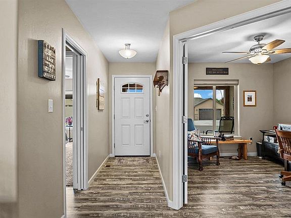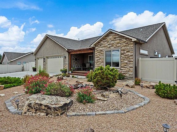 Welcome to this beautifully maintained 3-bedroom, 2-bathroom home with attached 3-car garage located in the highly sought-after English Gardens 4 subdivision. This property offers peaceful privacy and central access to all the amenities Montrose has to offer. This home feels like new and includes upgrades and custom features from the base plan. The thoughtful design includes vaulted ceilings in a light and bright living area with an open-concept layout, modern kitchen, and three bedrooms. The primary suite includes an en-suite bath with two sinks, tiled shower and walk-in closet for convenience. Outside, the property is landscaped for easy care with low-maintenance plants and a drip system. The fully fenced backyard provides both privacy and security, perfect for pets, kids, or weekend entertaining. Covered patio space with screen room, ideal for hosting social gatherings or relaxing evenings. 220 is available if you want to add a hot tub next to the patio. There is extra parking space for RV or work trailer behind double gates with dedicated 30 amp outlet. The three bay attached garage offers plenty of room for vehicles, tools, or hobbies. Every detail of this home speaks to durability and efficiency, from the upgraded laminate flooring to the stone and stucco exterior. This home delivers all the benefits of comfortable living with the added bonus of radon mitigation of crawlspace when the house was built. Whether you're looking to upsize, downsize, or simply relocate to a thriving neighborhood, this property checks all the boxes. Don't miss out—schedule your private showing today!