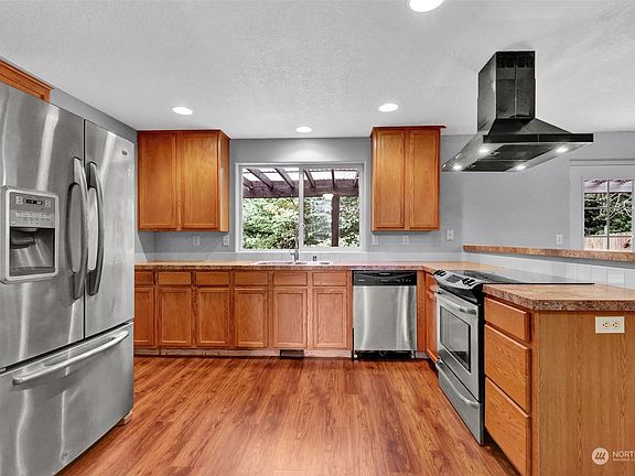 Welcome to this charming gem in Battle Ground, WA! Immaculate and move-in ready, this home features new main level flooring, fresh paint, and trim throughout. French doors off the dining room create a seamless indoor-outdoor flow. The remodeled half bath and large open kitchen with stainless steel appliances add functionality and style. Retreat to the sizable primary bedroom with a walk-in closet and spacious bathroom. Outside, enjoy the cozy backyard with deck and pergola-covered patio. This home features a brand-new roof and is located across from the neighborhood park! Offering the perfect blend of comfort and convenience, don't miss out - schedule a showing today!