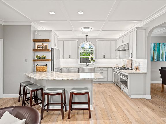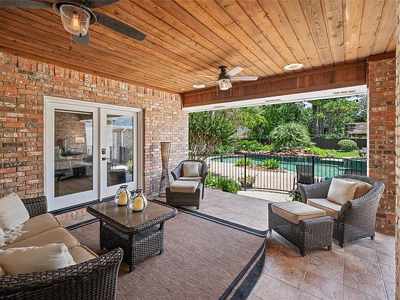 Set on a wooded ½-acre lot, this stunning remodel offers charm and luxury. A brick patio with gas lanterns welcomes you in. Inside, enjoy wood-look tile floors, custom ceilings, stonework, and large picture windows.