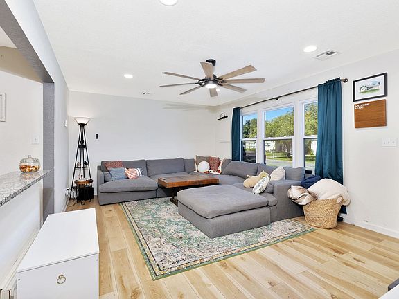 Welcome to your new home on Dallas! This home features an open-concept layout — a rare find for its age. The living room and kitchen flow together beautifully with luxury vinyl flooring, granite countertops, and stainless steel appliances. Two bedrooms and a full hall bath sit just off the main living area. Through the kitchen, you’ll find a spacious laundry room with great cabinet storage and direct access to the oversized garage. The master suite sits at the back of the home, filled with natural light, and includes a remodeled bathroom and large walk-in closet. Step outside and you’ll love the three outdoor spaces designed for entertaining — two patios plus a cozy firepit area, perfect for those crisp fall nights!