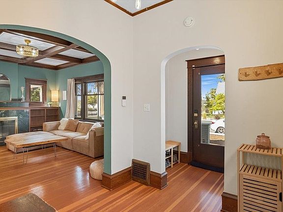 This historic 2-story Craftsman features the best of both worlds: vintage charm and character harmoniously coupled with modern updates for comfortable living. The prime walkable location offers Centennial Trail access right outside your front door, and close proximity to parks, outdoor recreation, a bus route, the popular and new Kendall Yards development and downtown Spokane. Box beam ceilings, hardwood floors, leaded glass windows, wood-burning fireplace and high ceilings add to the old world charm of this beautiful home, while a modern kitchen, fresh paint, updated electrical and plumbing, sprinkler system, newer roof and a brand-new high efficiency heat pump provide year-round comfort and peace of mind. Additional features include ample basement storage, detached garage, fenced backyard and raised garden beds. Enjoy the view (or cheer on the Bloomsday runners) from the beautiful covered front porch or upper level balcony, too! All appliances are included for a move-in ready opportunity.