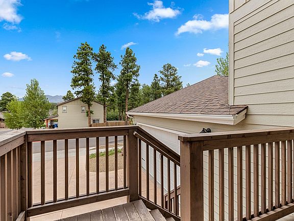Fully furnished gorgeous Townhouse with spectacular views of the San Francisco Peaks. Very rare find, a community in Flag that allows Airbnb! Lovely wide open floor plan with upgraded stacked stone and custom mantel gas log fireplace in the LR, beautiful and spacious kitchen w/newer dishwasher installed in 2020 and vented gas range, granite, large island, no carpet throughout, Central A/C, upgraded smart thermostat, Custom Hunter Douglas blinds, sturdy ceiling mounted storage in garage, low maintenance front and back yards...and those VIEWS!!! Unobstructed Peak views from the primary bedroom and deck as well as from the front living room window and front porch. This home is set for you to bring your suitcase and settle in. Everything you see stays. Home -Sweet- Home!