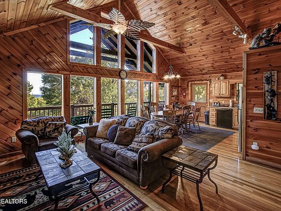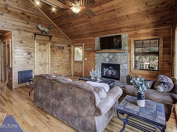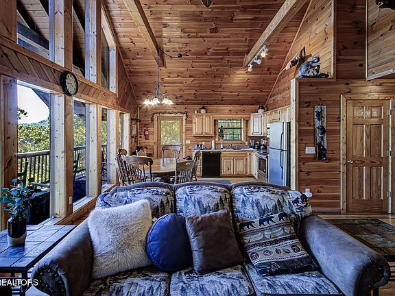 Welcome to Bear Cub Lodge, a stunning 3-bedroom, 3-bath log cabin ideally located in beautiful Wears Valley, just 15 minutes from The Island in Pigeon Forge and a short drive to Gatlinburg. This cabin offers the perfect balance of peaceful mountain living and convenient access to world-class attractions, dining, and entertainment. With an impressive 138 five-star reviews on Airbnb, Bear Cub Lodge has earned its reputation as a guest favorite—offering exceptional comfort, modern amenities, and unforgettable Smoky Mountain views. Inside, you'll find a spacious open layout featuring a warm living area with a stone fireplace, a fully equipped kitchen, and a dining space surrounded by windows showcasing breathtaking mountain scenery. The main level hosts two king bedrooms, including a primary suite with a private bath, while the lower level offers a third king bedroom and a large game room complete with a pool table, board games, and two bunk beds—perfect for extra guests or family fun. A sofa bed provides additional sleeping accommodations, comfortably hosting up to 12 guests. Step outside to enjoy multiple decks with serene mountain views, a relaxing hot tub, and a charcoal grill ideal for outdoor dining after a day of exploring the Smokies. Whether you're looking for a proven short-term rental investment or your own private mountain retreat, Bear Cub Lodge delivers the best of both worlds—tranquil surroundings, modern comfort, and unbeatable proximity to the heart of Pigeon Forge and the Great Smoky Mountains National Park.