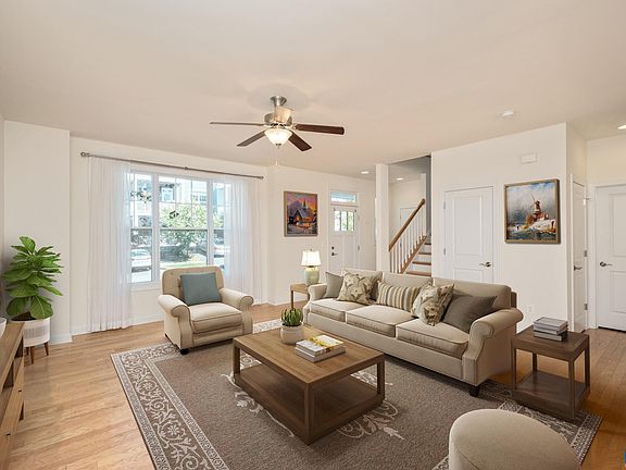 Enjoy your townhouse that lives like a single family home. As you walk through the front door you enter your main level. The spacious living room gives you flexibility for furniture. The natural light & real hardwood floors flow into your dining room with plenty of space for a full size dining table. The gourmet kitchen gives you tons of countertop space & storage to satisfy any home chef. Step out onto your deck to entertain. As you go upstairs, you'll notice a great, sunny flex space perfect for a small office or reading nook. The primary suite has a walk-in closet. The attached bath includes double vanities & large, tiled shower. Two more big bedrooms accommodate queen-size beds plus furniture (unlike the normally small townhouse bedrooms). Another full bath plus a real laundry room completes the second floor. Head to the basement to see the real potential of 1,000+ sf of unfinished space which is ready to add another full bathroom plus a bedroom, media room, rec room, etc. From the basement walk out into your fenced in backyard with plenty of room to play. The HOA covers your lawncare, trash, basketball, & tennis courts. Two designated parking spots right outside your front door.