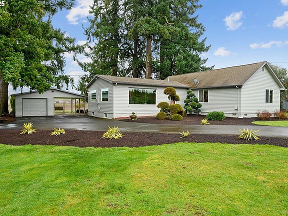 This enchanting property boasts a wonderful home and two outbuildings for your use. Nestled within easy reach of I-5, the home is just moments from town, yet maintains the feel of a private retreat. It features a renovated primary bedroom with a walk-in closet, hardwood floors, and a sliding patio door leading to the deck. The main bathroom showcases tile flooring, a walk-in shower, and a custom vanity. Meanwhile, the kitchen is equipped with stainless steel appliances, a bar seating area, and a charming dining nook. Outside, a gardener’s paradise awaits with a perennial garden brimming with blueberries, raspberries, and asparagus, alongside ample space for container gardening. Surrounding a delightful treehouse, the mature landscape provides a serene escape.