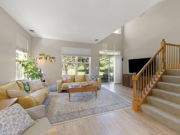 Gorgeous 2 bedroom 2.5 bathroom end-unit in popular Heritage Meadows. There is plenty of outdoor space with the side yard and open green space off the patio. This private entrance home features a 2 story family room soaring ceiling and lots of windows offering natural sunlight! Spacious eat in kitchen with stainless steel appliances. The primary bedroom features cathedral ceilings, huge walk in closet and ensuite bathroom. Spacious 2nd bedroom, full guest bathroom and laundry room complete the 2nd floor. Close to schools, parks, and close to endless dining & shopping options!! Plainfield 202 school district! New water heater 2020