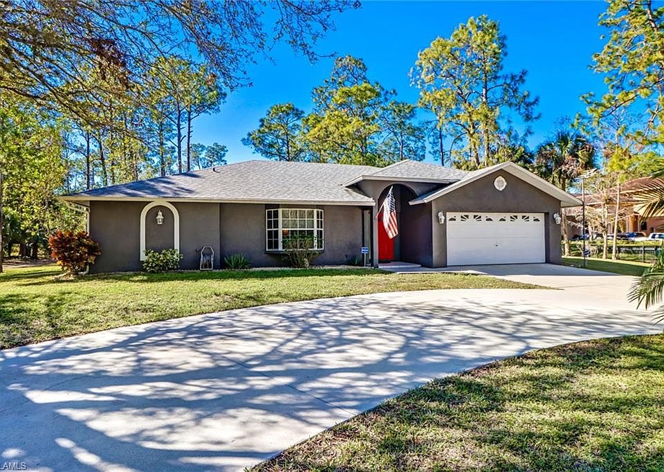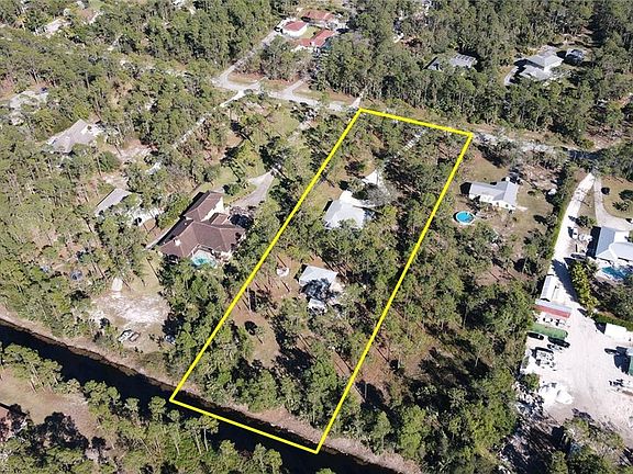 2.27 ACRE Golden Gate Estates property with AIR CONDITIONED SHOP OFFICE & POOL! A great opportunity awaits you at the end of this long driveway with pine trees surrounding as you drive up. This charming three-bedroom, two-bathroom pool home features MANY upgrades including a 2017 roof and A/C unit, new fridge and washer/dryer replaced in 2019, 2020 hot water heater and water softener system, 2022 pressure tank along with 2 new well pumps and a 2017 screened in lanai surrounding the beautiful pool which has an electric pool heater and electrical panel equipped to be hooked up to a generator. Inside you'll find grey vinyl plank flooring throughout the main living space and manual hurricane shutters on all doors/windows. Enjoy all these updates plus the added bonus of two living and dining areas. Outdoor opportunity is endless with 2.27 acres! The backyard is great for relaxing and entertaining. Perfect lot size for animals, outdoor toys, family activities, storage and more! Only 1 mile to Collier Blvd & close to shopping, dining, the Founders Square center and MORE!!! This location puts your children in Big Cypress Elementary, Oakridge Middle and Gulf Coast High School. NO HOA FEES!