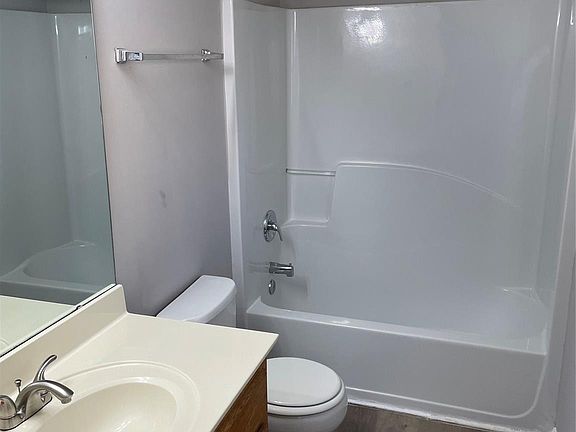 Rocking chair front porchNeutral paintLarge eat in kitchenPlenty of natural lightNice primary bedroomCeiling fan
