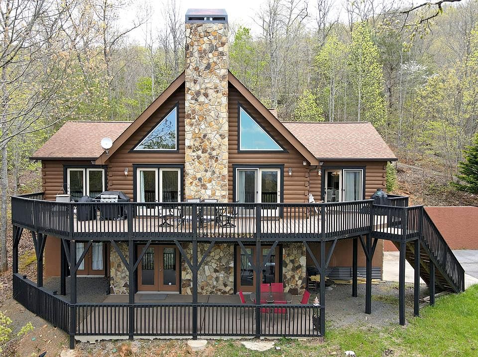 LUXURIOUS TRUE LOG CABIN PRIVATELY LOCATED IN A GATED CABIN COMMUNITY! This spacious cabin offers spectacular long range mountain views, 3 bedrooms plus a bonus room, 4.5 baths, finished walk-out basement and a two car garage. Large deck to relax on while listening to the birds and gazing off into the mountains. Super solid real-log construction with a poured concrete basement. High-speed internet available at this one and super convenient to Hayesville, Brasstown and Murphy, NC!