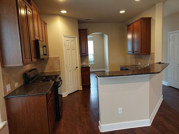 Great home in Parkside at Mayfield Ranch, with Leander schools and elementary school in community. Automatic sprinklers, Formal Dining, wood flooring common areas. Kitchen with breakfast bar. Covered patio Convenient access to Southwest Williamson County Regional Park from neighborhood trails.