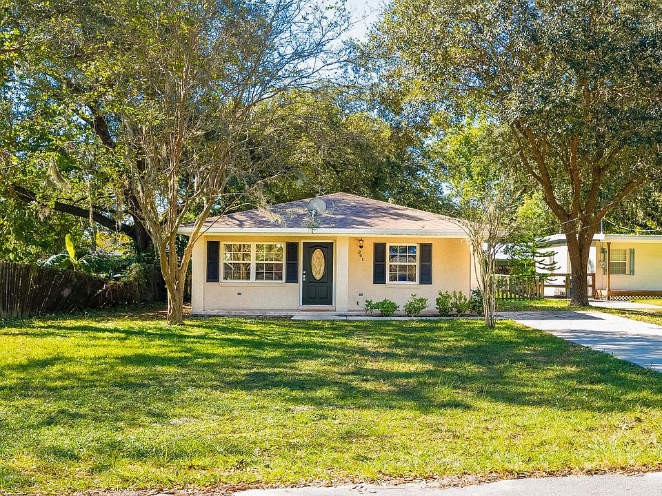 Cute as a Button! This 2 bedroom 1 bath home has Open Floor plan with roomy kitchen and lovely front porch plus back covered porch. Double sink vanity in bathroom. Country living setting in a modern home. Washer/Dryer hookup. Close to Publix for grocery shopping and Easy Access to Vilano Beach & Downtown from this location. BYOM ~ Bring your own mower. Cute backyard.