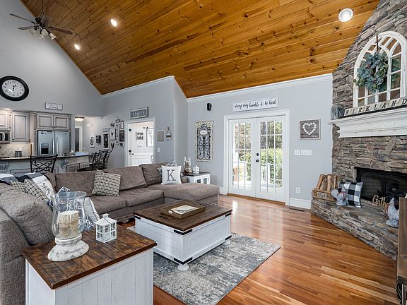 Mountain & Country Living at its best! Custom built home is perfectly situated on 5 private acres. Beautiful setting with all usable land, salt water pool, 4 oversized garages, no HOA fees, plenty of room for RV parking & all your toys. Home features 4BR/3.5BA, open concept, soaring vaulted wood ceilings, stack stone fireplace w/gas logs, well appointed kitchen, custom cabinets, breakfast bar, separate dining room, breakfast nook, pantry, mud room/laundry & half bath. 3 BR on the main floor including master suite w/spa bath & 2 walk-in closets. Huge bonus room plus a finished basement w/family-recreation room, full bath, bedroom, garage, workshop & separate entrance. Custom inlaid floors, zoned HVAC, termite bond, buried propane, wired for hot tub, outdoor fire pit. (New interior paint, hot water htr, A/C unit, LED lighting) This home has so many extras! Some furnishings included in sale.
