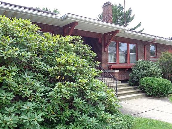 Charm abounds in this classic hard to find brick ranch in Sharon, 1 block from schools and short distance from Buhl Park. You can watch the world go by from your covered front porch. The woodwork detail in this home is phenomenal from a coffered wood ceiling in the living room along with beautiful crown moldings in living room and dining room to the built in dining room hutch and beautiful wood double doors to hardwood floors throughout. Laundry chute from bedroom to basement. Good basement with half bath. Newer updated main bath with beautiful wains coating and large walk-in shower as well as built-in linen closet. Large 18x19 2 car garage and a covered side porch complete the amenities of this home. Great location!