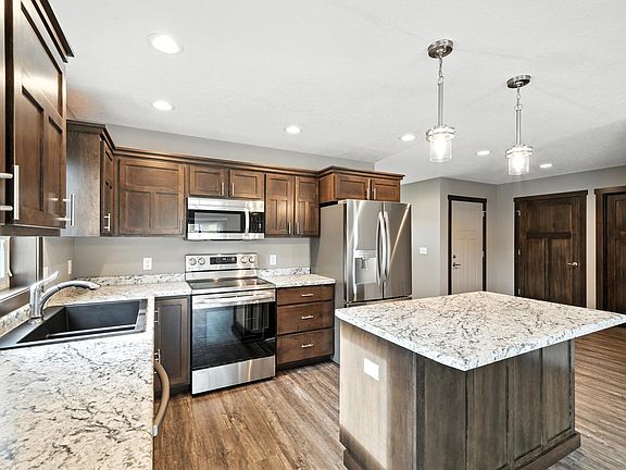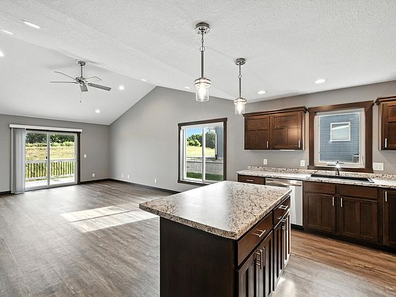 This beautiful 3-bedroom, 2-bathroom twin home offers the perfect blend of comfort and style. Step inside to a spacious open floor plan featuring vaulted ceilings, warm laminate flooring throughout the main living areas, and elegant mission-style trim work. Andersen Windows fill the home with natural light, while granite bathroom counters with tiled flooring add a touch of luxury. The lower-level lookout basement is unfinished, providing endless possibilities for future living space or storage—plenty of room to grow and make it your own. Don’t miss the chance to call this move-in ready home yours