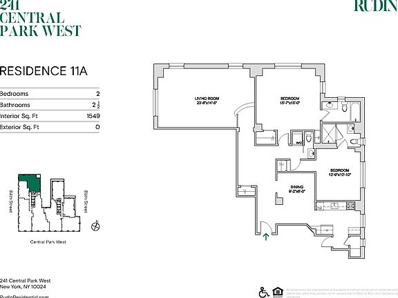 Spacious, 2 Bedroom, 2 Bathroom home, apartment 11A features: