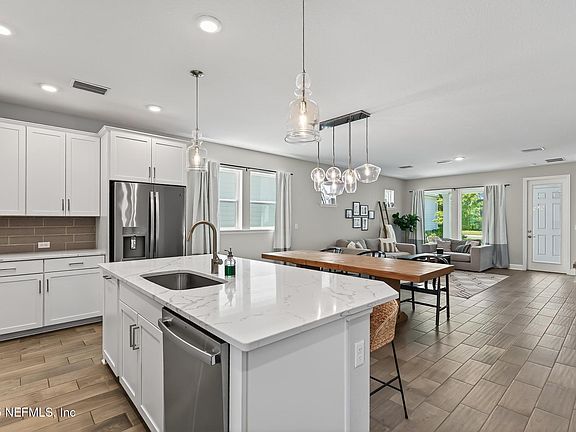 Welcome to this stunning 4 bedroom, 3 bath David Weekley home, built in 2022 and located in the sought-after Shearwater community. Thoughtfully designed with open living spaces, this home offers a bright and inviting layout perfect for both everyday living and entertaining. The gourmet kitchen features a walk-in pantry, dedicated prep and cooking areas, and plenty of space for hosting your culinary creations. Enjoy tranquil pond views from your living spaces, with the community's kayak launch path conveniently located nearby. The spacious Owner's Retreat is a true sanctuary with a spa-like bathroom and generous sized walk-in closet. Additional bedrooms provide plenty of closet space and comfort for family or guests, while flexible upstairs and downstairs areas allow you to create a home office, playroom, or media room to fit your lifestyle. A rear-entry garage adds to the home's charm and curb appeal. Living in Shearwater means access to resort-style amenities, including a community pool with lazy river, tennis courts, kayak launch, playgrounds, and miles of walking trails. Nestled in an A-rated school district, this home offers not just comfort and style, but also an incredible lifestyle!