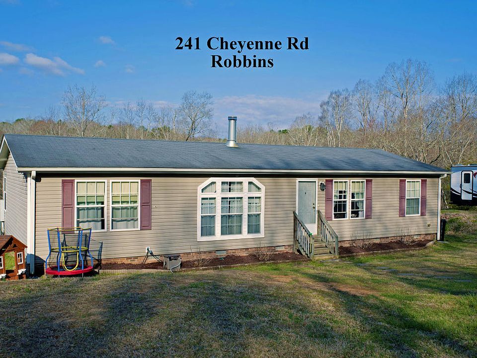 Country living at its best-close to downtown Robbins but no city taxes! Come see this well kept modular home with split bedroom plan, open floor plan with just over 2 acres of privacy & river frontage on Bear Creek! This move in ready home features Master suite with walk in closet, private full bath with garden tub, the 2 additional bedrooms share a full bath, living/dining room, family room with wood burning fireplace, utility/laundry room, storage building and a partially fenced rear yard. New Amana heat pump installed in Nov 2017. New hot water heater and pressure tank for well in 2015.