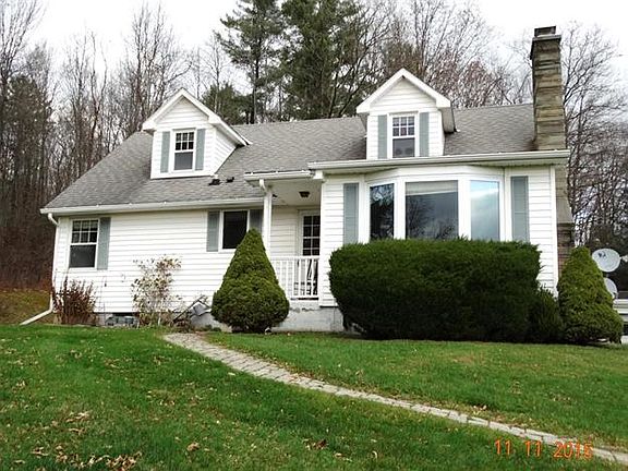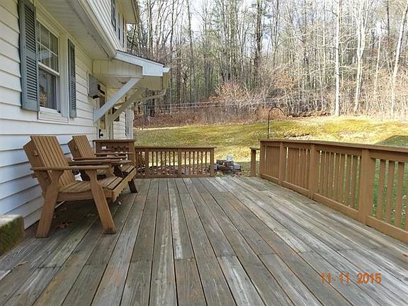 SPACIOUS 4 BEDROOM CAPE situated on 5.28 ACRES! Pretty kitchen has knotty-pine cabinets, eat-in area and atrium door which goes out to REAR DECK. This one-owner home has all NEW VINYL Thermo-pane windows, STONE FIREPLACE and HARDWOOD FLOORS throughout most of home. Expansive cape cod with big bedrooms and lots of STORAGE! Two downstairs bedrooms and full bath down. Nice big basement with 15x11 rec room area. Big rear deck overlooks PRIVATE BACK YARD with nice set-back from road.