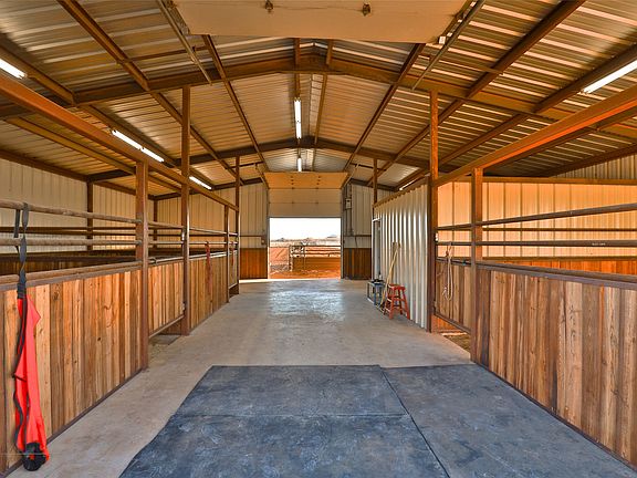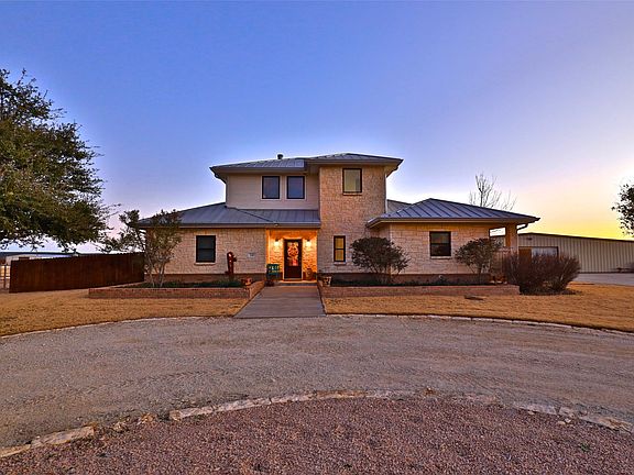 Stunning luxury equestrian estate nestled on 12.5 Acres with panoramic views of the surrounding countryside situated in a highly sought after area. Impressive custom-built, three-bedroom, 2.5 bath home features timeless elegant design with superb craftsmanship and attention to detail throughout. Spacious living area showcases a beautiful stone fireplace with ample custom built-ins, complete with crown molding and tile flooring. The open concept flows seamlessly through an arched entry to a designer chef's kitchen equipped with stylish cabinetry, granite counters, dual ovens, a walk-in pantry and an eat-in dining, ideal for hosting and entertaining. Oversized utility room with space for an office. Retreat to the primary suite complete with an abundance of natural light and a cozy reading nook along with a spa-like bath boasting a soaking tub, a separate tiled shower and dual walk-in closets with one serving as a safe room. Powder room for guest downstairs. Located on the second floor are two spacious bedrooms with a jack n jill bath and tile floors throughout for easy maintenance. Enjoy the evenings relaxing in the screened in porch overlooking unobstructed sweeping views and colorful sunsets. Separate two car garage with an attached workshop for all your tools. Absolutely immaculate 45*75 Horse barn includes 3 stalls, a tack room, hay storage and a wash bay. The 20*45 awning opens to an incredible fenced riding arena with the perfect team roping setup! This secluded and privately gated estate offers an ideal blend of privacy, functionality and stunning natural beauty while delivering a true country lifestyle. Conveniently located 10 minutes from Hendrick South and in the desirable Wylie West School District.