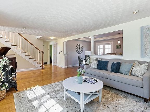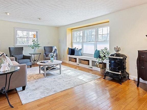 The perfect package! An architect designed the transformation of a smaller home into this stunning, spacious young colonial w/ a fresh & upbeat feeling! Inviting covered porch leads to a bright foyer & open floor plan. Granite kitcen w/ solid maple cabinets, SS appliances & recessed lighting. Dining area w/ French doors to large deck. Lovely column offers a distinct delineation betwn kit/dining & the awesome fam rm! Sunny space has a triple bump-out window w/ built-ins & recessed lighting. Hardwd flrs throughout 1st flr. 2 bedrms or bedrm/office on the 1st flr plus a stylish full bath. Beautiful staircase leads to the upper level w/ sunny landing & triple window. 3 bedrms here, incl a master suite w/ walk in closet & beautiful private bath. LL features a playroom/family rm & plenty of storage. High efficiency gas heating, central AC on 2nd flr, 200 amp elec & low maint. vinyl siding. The yard is amazing & has beautiful views of conservation land & western sunsets. New carpet and paint.