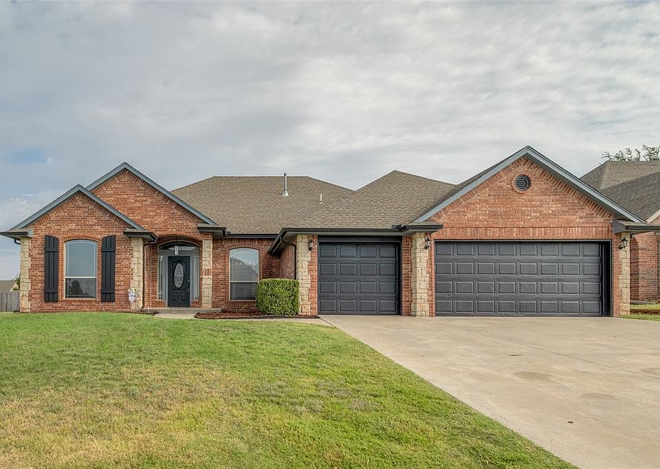 SAVANNAH LAKES, Stunning 4-bedroom, 2.5-bath home on a large corner lot in a nice neighborhood offering a community pond and pool. (4th bedroom makes a great home office) The open-concept design is filled with natural light and provides excellent flow for everyday living or entertaining. You’ll love the oversized closets in every room, plus fresh paint, new carpet in two bedrooms. Wood floors. Large covered patio—ideal for morning coffee, relaxing evenings, or hosting friends. Conveniently located in the Mustang school district, with easy access to shopping, restaurants, airports, major highways, gyms, medical care, and just minutes from the park and community center. New roof is on order.