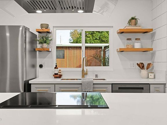 Revival on The Green welcomes you home with warmth, style, and seamless modern living. This fully remodeled 3-bed, 2-bath residence (plus a versatile bonus room) blends clean design with thoughtful functionality at every turn. Wide-plank light oak LVP floors, new entry door, dual-glazed windows and refinished ceilings, ground the home in cohesive quality, while the new mini-split HVAC system--complete with air conditioning--ensures year-round comfort.A beautifully reimagined kitchen showcases custom soft-closing shaker cabinetry, all-new appliances, floating shelves, and an expanded entertainer's island that naturally draws people together. Both bathrooms are entirely transformed with curated tilework, chic finishes, and elevated style.French doors open to a sun-filled private patio framed by drought-tolerant landscaping and a fluted wood screen that artfully conceals the garage entry--an unexpected design moment that makes everyday living feel elevated. The bonus room offers endless potential for crafts, storage, an office, or even pantry expansion.Located in the vibrant 55+ community of Hueneme Bay, residents enjoy a low-maintenance coastal lifestyle with a clubhouse, pool, spa, and golf course, plus easy access to dining, shopping, and Hueneme's charming pier and promenade. This is easy, turn-key living--with all the warmth of a home that simply feels good.