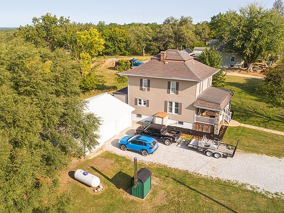 The house on the hill with southern views for miles right in the heart of Memphis, MO in Scotland County. This stately two story home offers 5 bedrooms, 2 bathrooms, a 2 car detached garage and sits on 7.4 ml acres. Country living right in town, the acreage consists of timber and open field areas, some fencing and space for added structures or livestock. The home has been updated through the years to include vinyl windows, vinyl siding, remodeled kitchen and bathrooms, flooring throughout, 2 new garage doors were installed in 2024 and a new front porch was done in April of 2022. The home has propane heat with wood as an option and central ac.