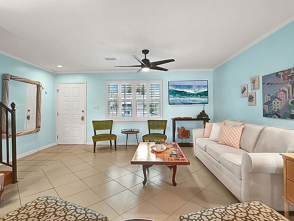 Gorgeous 2 bedroom, 2 1/2 bath, end unit townhouse only 2 blocks away from the beach. One of the most sought out beaches in Florida. Tastefully furnished and ready to rent. New A/C with UV light in 2021. New Hot Water heater in 2021, New plantation blinds in 2021, New modern celling fans throughout in 2021, New bathrooms with new vanity sinks and faucets in 2022, Harwood floors throughout upstairs and Tile throughout downstairs. Beautifully furnished private back patio. Each bedroom is furnished with a king bed and single bed. Each bedroom has its own private bath. Livingroom has queen sofa bed and half bath to accommodate a total of 8 people. 2 assigned parking spaces in front of the unit and additional visitor parking. 2 swimming pools with one heated in the winter. Clubhouse, shuffleboard, Pavilion. HOA fees include basic cable TV and Wi-Fi. Priced for quick sale.