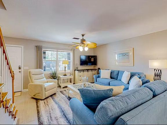 The search is over...you can stop scrolling. Whether your looking for a vacation home or a lucrative rental, this is it. This 2 bedroom 2.5 bath townhome is centrally located less than .25 miles from the Pompanos Joes beach access. Restaurants, great shopping and entertainment is just a short drive away. This home comes fully furnished with newer furniture and bedding, flooring and upgraded bathrooms with rain forest showers. There are 2 dedicated parking spots and a street legal Columbia Eye golf cart with new motor, new controller and new batteries included as well. Windows and doors are storm rated and have hurricane shutters installed. Whether your relaxing by the pool, grilling out on your back patio or catching a sunset at the beach...this is the place is for you!