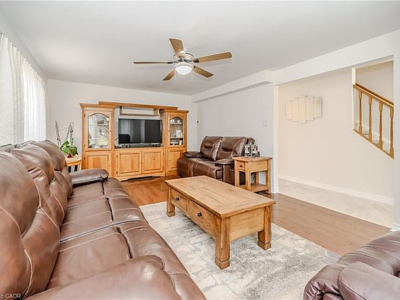 This charming home is ideally located near shopping, recreational facilities, transit, schools, and parks, with quick access to Highways 6, 7, and 24. Offering over 2,300 square feet of total living space, it’s designed with growing or extended families in mind. It boasts a practical layout with a well sized family room with hardwood flooring, the kitchen overlooks the spacious dining area which opens up to a fully fenced backyard with a large shed to fit in your gardening tools and supplies. The second level features five bedrooms and 4 pc main bath. The primary bedroom is a generous size and offers a 3-piece ensuite with newer tiled glass shower with glass door and a walk-in closet. The fully finished basement is perfectly appointed and features a large rec room with a gas stove fireplace, a sixth bedroom, a 3-piece bathroom with a newer tiled shower with glass door, laundry room with storage area and a cold cellar. Upgrades include: kitchen cabinets & stone countertops (2024), backsplash (2025), large ceramic tiles in hallway kitchen and dining room (2025), powder room (2025), new trim and new interior doors throughout main and second level (2025), new carpet on stairs to second level and the hallway (2025), freshly painted (2025), roof (2023), water softener (2021), furnace (2019), updated front-facing windows (2019), AC unit (2017). Be sure to check out our virtual tour.