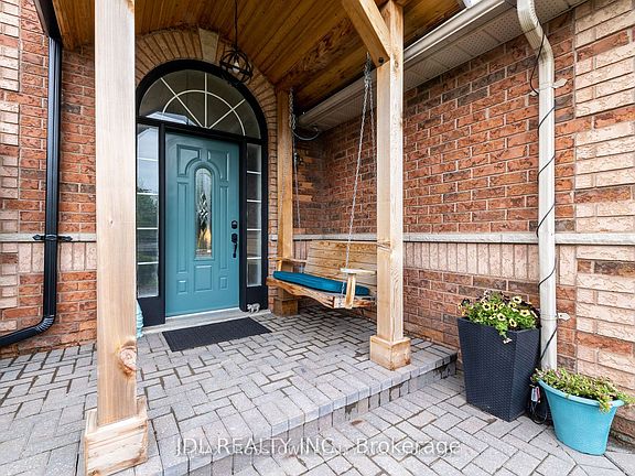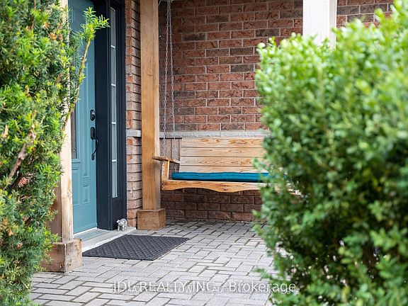 Welcoming front porchNewly built cedar entranceCozy porch swingLarge walk-in closetCottage-style eat-in kitchenSolid hickory cabinetsLeathered granite countertops