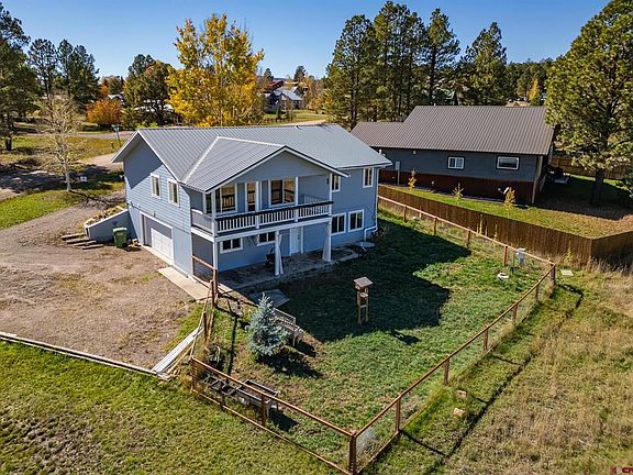 The possibilities are endless with this large four-bedroom, three-bathroom mountain home with a perfect, unobstructed view of Pagosa Peak! This home would make an excellent pet friendly short-term rental. Perfect for a multigenerational scenario too with the separate entrance on the lower level! The sellers moved the washer and dryer to the garage to free up more pantry space in the kitchen. Add another washer and dryer and you will have a set on each level! There is ample parking at this property, and it even has a half circle driveway in front of the house! The over-sized garage has drains for easy clean up! The sellers have had a fence professionally installed in the backyard to keep the fur babies in! Sit out on your back deck and take in the ever-changing view and the alpenglow of majestic Pagosa Peak! All new lighting added to this home and electricity ran to lower patio for a hot tub! Other improvements the sellers have recently made are Primary bath has a new sink, kitchen has granite countertops, new electric hybrid (electric only mode or heat pump) water heater, new gas central heater and a new garage door with more insulation. All blue walls have now been painted white! Hatcher Lake is close by and holds some of the largest fish in the Pagosa Lakes subdivision! Are you a veteran? The current VA loan could possibly be assumable at a low interest rate! Being a resident of Pagosa Lakes gives you access to four fishing lakes and a Rec center that has an indoor pool, fitness equipment, weights, racquetball and pickleball! Turkey Springs is close by for hiking, mountain biking, snow shoeing, cross country skiing, ATVing and Snowmobiling! Continue up Piedra Road to Williams Creek Reservoir for excellent fishing and a Kokanee Salmon run every October! This property is a must-see! Some photos of this listing may include virtually staged amenities, furniture or fixtures.