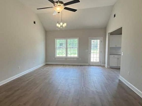 Experience the Eden floorplan, modern living in the brand-new Lanier Ridge community with this elegant 3-bedroom, 2-bath home spanning 1,415 sq. ft. Designed with both comfort and function in mind, this open-concept floor plan features 9-foot ceilings, creating a bright, spacious feel throughout. The heart of the home showcases a stylish kitchen that seamlessly connects to the dining and living areas—ideal for entertaining or everyday living. Step outside to a covered patio overlooking a generous .56-acre homesite, offering endless opportunities for outdoor enjoyment. The primary suite provides a relaxing retreat with dual vanities, a garden tub, and a separate shower, while two additional bedrooms offer flexibility for guests or a home office. Conveniently located near Long County schools and just a short drive from Hinesville, this new construction combines rural tranquility with modern convenience. Exterior image is of actual home; interior images represent a similar model within the community. Photos are for reference only NOT ACTUAL HOME. This home is just minutes from Hinesville and no flood insurance is required.