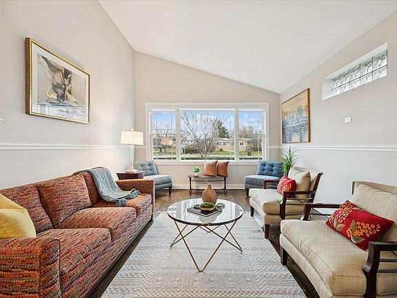 Step inside this beautifully updated split-level home where light, volume, and thoughtful design come together in all the right ways. A skylit foyer opens to airy living and dining spaces with vaulted ceilings and hardwood floors, creating an effortless backdrop for both everyday life and weekend entertaining. The renovated kitchen serves as the heart of the home with quartz countertops, glass subway tile, soft-close cabinetry, stainless steel appliances-including Viking cooking suite and a 2025 LG refrigerator-plus a center island and direct access to the backyard for seamless indoor-outdoor flow. Upstairs, the sleeping level offers three comfortable bedrooms, each with hardwood flooring and ceiling-mounted light/fan fixtures. The primary bedroom features two double-door closets, while the updated hall bath includes a quartz-topped vanity and a shower/tub with whirlpool function. Bedroom three adds a touch of personality with crown molding accented by integrated lighting. The lower level expands your living space with a bright, tiled family room, an impressive second bathroom with dual vanity, walk-in shower with bench, mosaic inlay, body sprays, and Kohler fixtures, plus a laundry/utility room equipped with a 2024 LG washer, Maytag dryer, utility sink, cabinetry, and direct yard access. Outside, enjoy a fenced yard with a concrete patio and gazebo-perfect for al-fresco dining, lounging, or simply soaking up summer evenings. Mechanical updates bring peace of mind, including 100-amp electrical, Armstrong furnace (2025) with humidifier, Rinnai tankless water heater (2020), sump pump (2021), Carrier AC, Walter filter (2020), asphalt driveway, and Nest thermostat. A home that balances comfort with curated updates-move-in ready, wonderfully maintained, and designed for the way people actually live today. Perfectly poised for its next chapter.