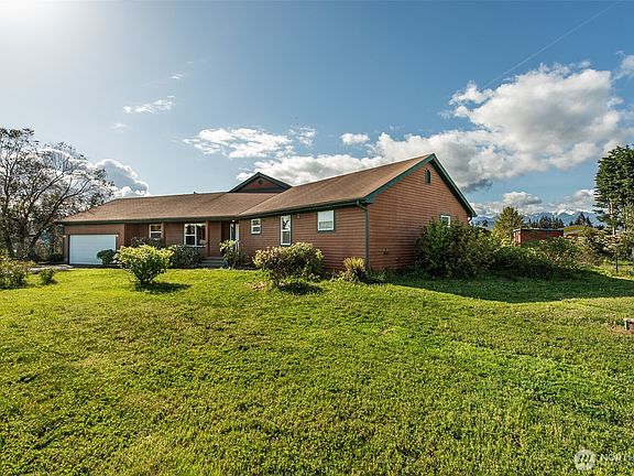 This delightful property offers stunning, unobstructed views of the Olympic Mountains both inside & out. Uniquely shaped living room designed to highlight these breathtaking vistas, enhanced by beautiful hardwood floors that flow seamlessly throughout the house. Spacious primary BD is a true retreat with walk-in closet & ensuite plus an add'l closet fo storage needs. Enjoy dining/entertaining in multiple areas, including French doors opening to a massive wood deck—perfect for outdoor gatherings or simply enjoying morning coffee w/ nature at your doorstep. At 1.3-acres of a fully fenced lot, this property is a gardener's dream! Discover a variety of gardening delights throughout including a small orchard plus a spot for an RV with w/hookups