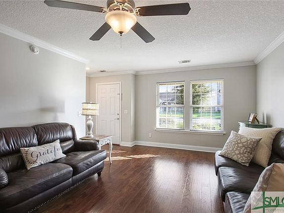 Gorgeous 4 bedroom, 2.5 bath all brick home w/ a 3-car garage in fast-growing Pooler. The outdoor oasis is amazing - covered porch, enormous walled in brick patio, firepit & fenced in backyard plus grassy area overlooking a tranquil lagoon is the perfect space for entertaining. Gorgeous granite countertops, rich wood cabinetry, custom backsplash, stainless steel appliances (French door refrigerator included), center island, walk-in pantry, tile floor & keeping area complete the kitchen. Master retreat w/ a huge walk-in closet & luxurious bathroom - desired double sinks, garden tub & separate shower. Beautiful wood laminate runs from the entry through the family room to the formal dining room. Gas fireplace in the family room, inviting front porch, elegant tray ceiling in master suite, generous secondary bedrooms, fresh interior paint & new carpet being installed. Conveniently located near restaurants, shopping, entertainment, I-16 & I-95. No flood insurance required. Must see!