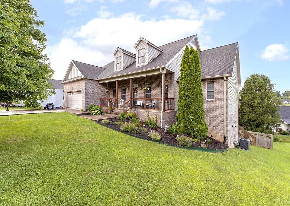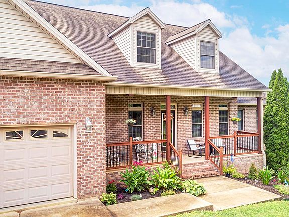 Beautiful Cape Cod with hard to find layout featuring two bedrooms on the main floor, each with its own bath! One is the oversized master suite with a large bathroom, complete with shower and jetted tub, the second is currently being used as a spacious office. There are three more large bedrooms and a full bath upstairs. Owners suite and dinning room have trey ceilings and unique architectural features that you'll find throughout the home. A favorite feature of the home is the open living area with real hardwood floors, a vaulted ceiling open to the upstairs hall, floor to ceiling stone gas fireplace and a wall of over-sized windows with wooden blinds across the back of the home for tons of natural light. The kitchen features tons of storage with solid wood cabinets, Corian countertops, stainless steel appliances, and a center island with even more storage! There's a convenient oversized laundry/mudroom as you enter from the garage with a half bath and laundry sink. The lower level is actually above ground with a subfloor, and the area is already partially framed and insulated and ready to be finished to nearly double your living space. You have access to the double decks from multiple locations from the main level and lower level. Parts of the lower deck are covered to protect from the elements and would make a nice outdoor living area. The decks overlook a fully fenced back yard where you'll find trees for privacy at the back of the lot and landscaping throughout the front yard complete with colorful perennials. Great location close to historical Jonesborough, Johnson City, hospital and shopping. Less then 15 minutes to 26 via Boones Creek Rd. Buyer, buyer's agent to verify all info.