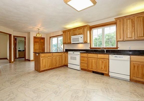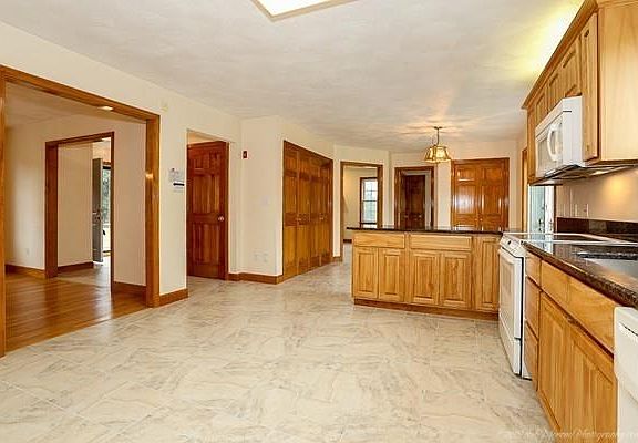 THIS COLONIAL IS MOVE IN READY AND SET WAY BACK OFF THE STREET ON A FLAT 3+ACRE LOT. You'll love the large eat-in kitchen with loads of birch cabinets, pantry, granite counter tops and new neutral tile flooring. Oversized half bath with laundry. Formal living room with new carpeting and wood burning fireplace. Dining room conveniently located next to the kitchen. Step up to oversized family room with HW flooring and cathedral ceiling. Upstairs master bedroom has a walk-in closet with adjustable shelves, new WW neutral carpet, and connecting bathroom. The 2 additional bedrooms have HW floors. Walk-up attic with 3 dormers and window perfect for future expansion. This home has a security system, water filtration system and tilt- in insulated windows plus tons of storage. Attached 2 car garage and the back of the home has an additional garage to store cars or lawn equipment. Less than a mile walk to High Plain/Wood Hill schools...bus stop at end of driveway. Lovely country setting!