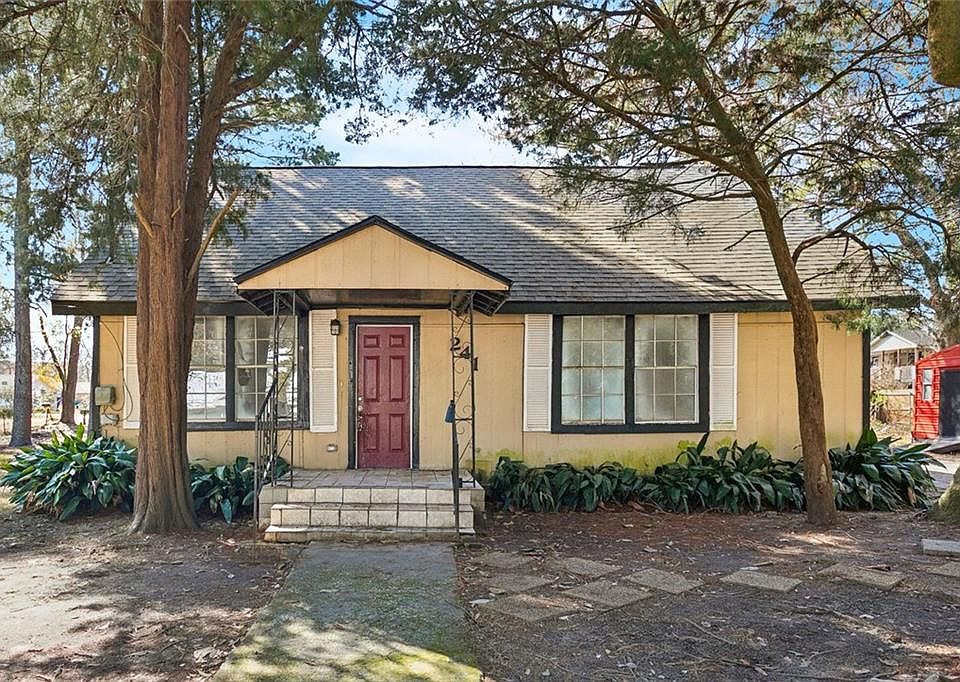 HISTORIC RENOVATION PROJECT WITH OLD TOWN CHARM & FEEL; SITUATED ON 120'X138' DOUBLE CORNER LOT COMPLETELY FENCED; AMAZING TREES LOCATED ON PROPERTY - MAGNOLIAS, CYPRESS, LOBLOLLY PINES, CEDAR, JAPANESE PLUM, ETC.; INVITING FRONT PORCH SURROUNDED BY LUSH CAST IRON PLANTS; DEN WITH WOOD PANELING ACCENT WALLS & CORNER FIREPLACE; 2 LARGE BEDROOMS; ONE WITH BATH; LARGE KITCHEN; HOME HAS TONS OF POTENTIAL; NEW ROOF & CONDENSING UNIT; SIDE DRIVE & SHED;