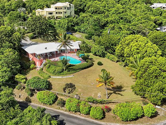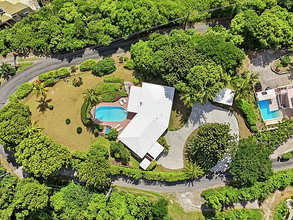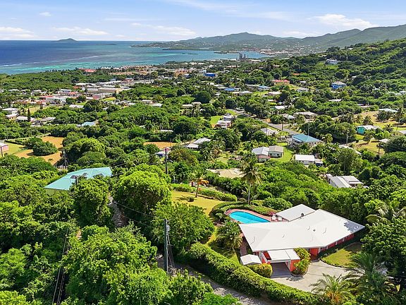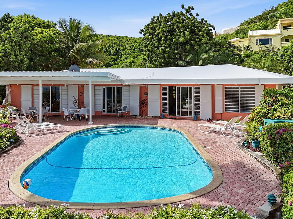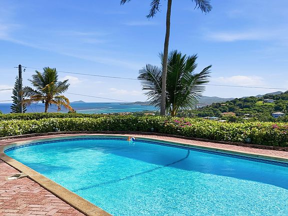Experience comfort in this meticulously kept home set on just over an acre with beautiful views overlooking Christiansted harbor and Buck Island. This updated and spacious 2 bedroom home, with ensuite bathrooms, open onto the large pool area with stunning sea views. Designed for easy island living, the property offers a 30KW diesel generator, AC throughout, 35,000-gallon cistern, and on-demand water heaters. The home is perfectly nestled on a ridgeline point with a very easy grade and fully fenced yard which is adorned by mature trees. The beautiful, covered gallery provides shade for relaxation during pool parties or just enjoying coffee while the sun rises in the east. The carport, generator/storage room, and Lexan protection on east-facing windows add extra peace of mind, while fully enjoying easy living.