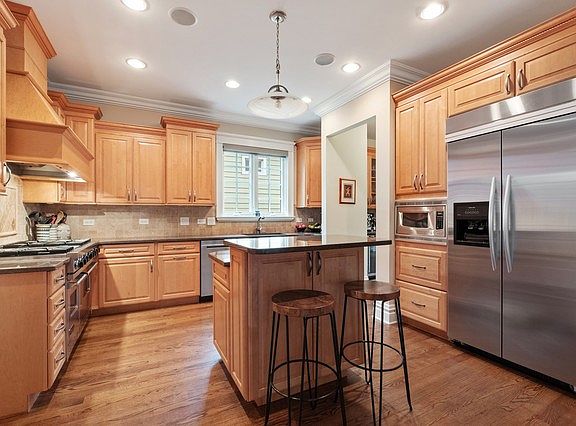 This spectacular five-bedroom brick colonial gem features a well-designed floor plan and high-end finishes. A stunning kitchen boasts maple cabinetry, stainless steel appliances (Viking range, KitchenAid refrigerator), ample cabinet space and is located adjacent to a butler's pantry and charming breakfast nook. A welcoming family room is complete with wood-burning fireplace (gas starter) and oversized windows, providing abundant natural light. Spacious first floor office has custom millwork and hardwood flooring. All four 2nd floor bedrooms built with volume ceilings, generous walk-in closets and have been freshly painted. An impressive basement provides an additional bedroom, wraparound recreational room with fireplace, wet bar, full bath and room for wine cellar. Brand new washer & dryer, water heater, dishwasher and sump pump. Seconds from South School, Watts Park and Downtown Glencoe.